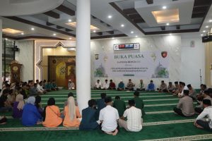 Rangkaian kegiatan kemudian dilanjutkan dengan penyerahan bingkisan oleh Kapolda Bengkulu kepada perwakilan kekompok elemen mahasiswa, tausiyah, doa bersama, serta buka puasa bersama.